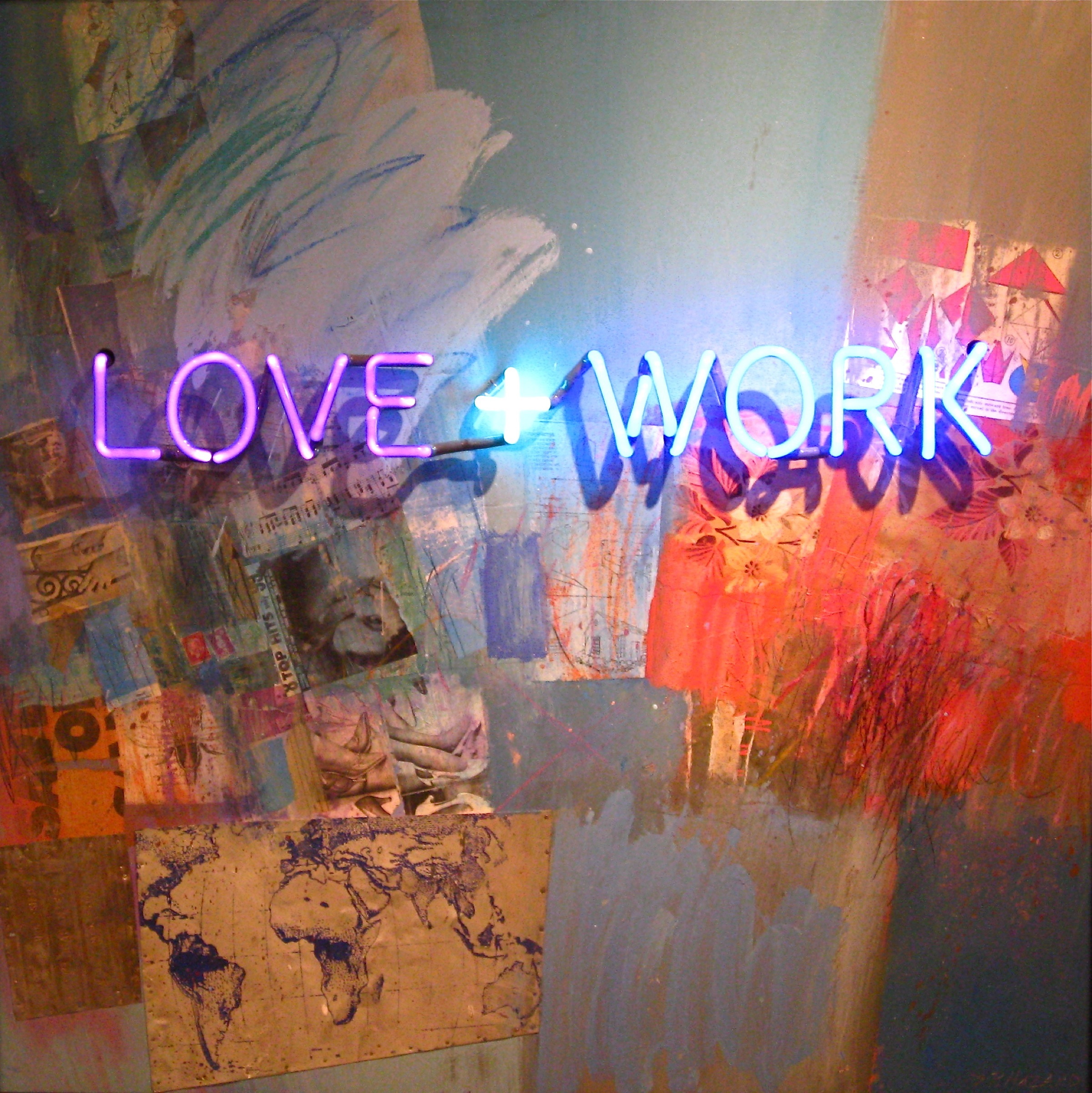 Neon, oil & acrylic, silkscreen, metal and mixed media