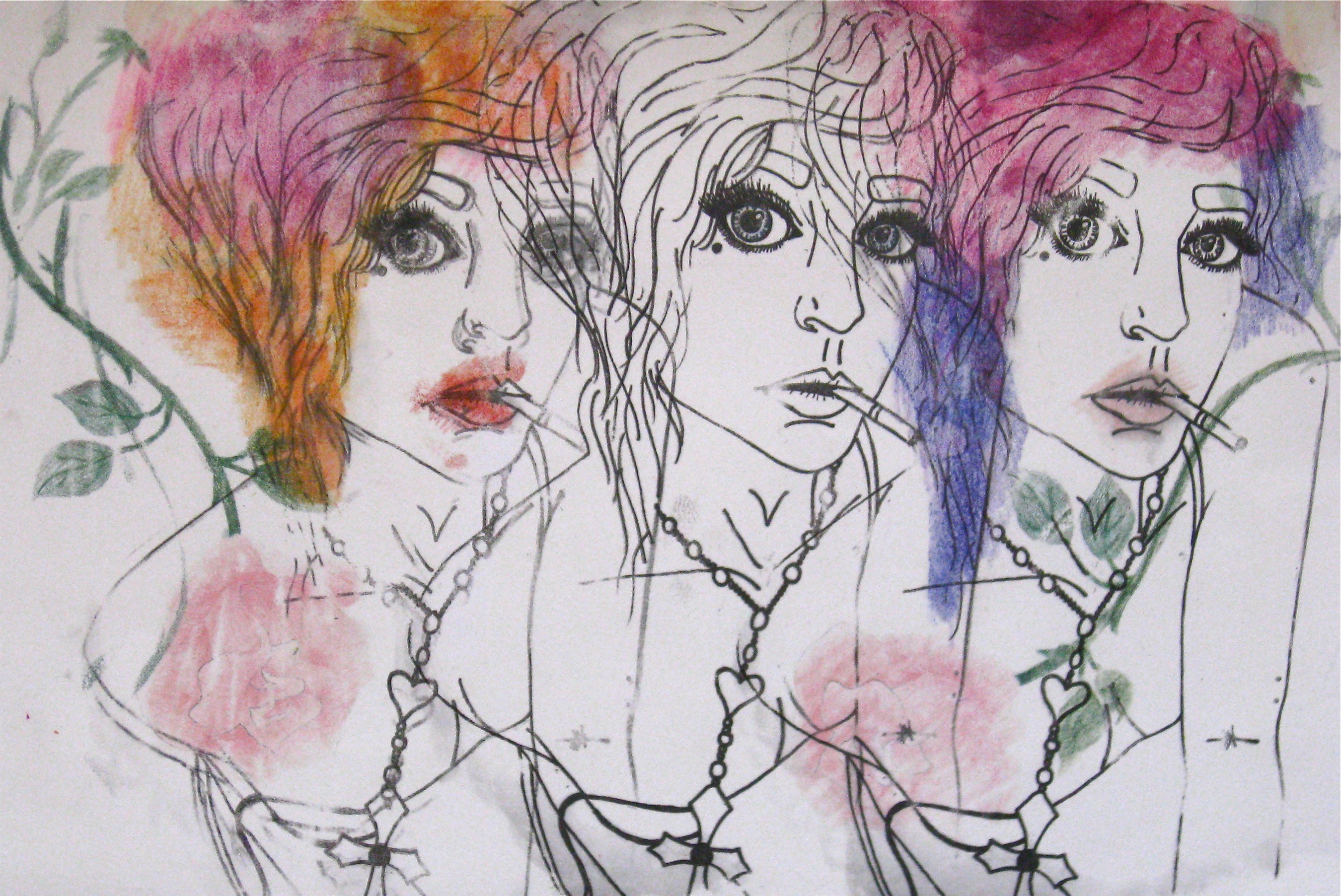 Drawing/monoprint and solvent transfer
